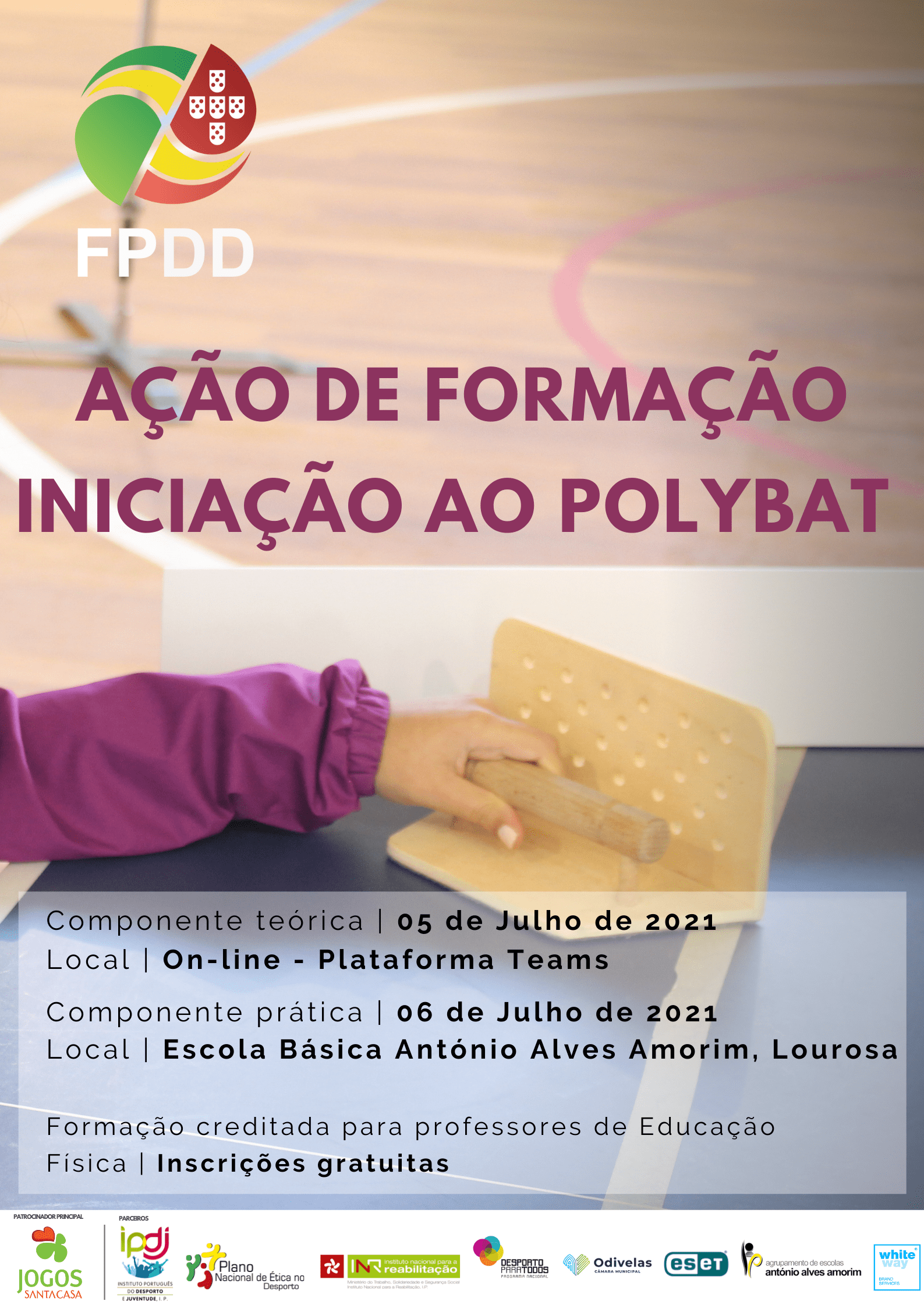 Nos próximos dias 5 e 6 de julho a FPDD irá realizar uma formação on-line e presencial de iniciação ao Polybat para Treinadores, Técnicos e Professores que intervêm no Desporto para Pessoas com Deficiência.