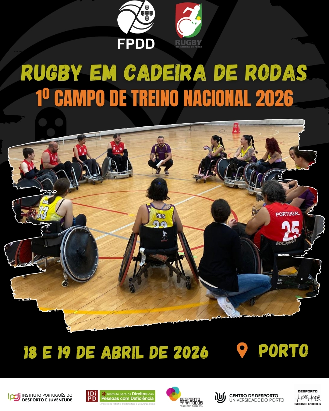 No âmbito do projeto “Rugby Sobre Rodas”, a FPDD, com o apoio da Associação de Desporto sobre Rodas (ADSR) e do Centro de Desporto da Universidade do Porto (CDUP), irá realizar o I Campo de Treino Nacional de Rugby em Cadeira de Rodas – Estágio Nacional 2026.