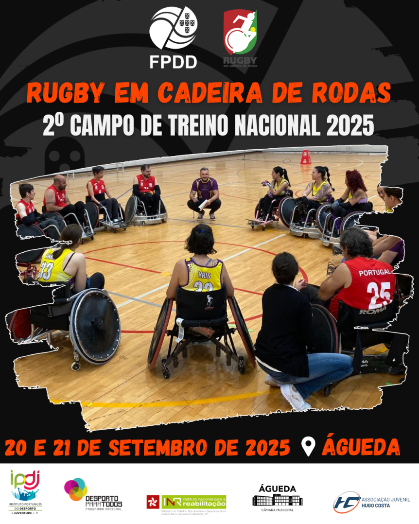 No âmbito do projeto “Rugby Sobre Rodas”, a FPDD, com o apoio da Câmara Municipal de Águeda e da Associação Juvenil Hugo Costa (AJHC), irá realizar o II Campo de Treino Nacional de Rugby em Cadeira de Rodas – Estágio Nacional 2025.
